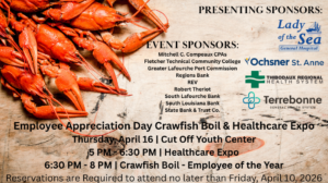 The Lafourche Chamber of Commerce is hosting their annual Employee Appreciation Crawfish Boil & Healthcare Expo on Thursday, April 16, 2026, at the Cut Off Youth Center. One of the highlights of this event is recognizing your nominations for Employee of the Year and awarding the 2026 Employee of the Year!